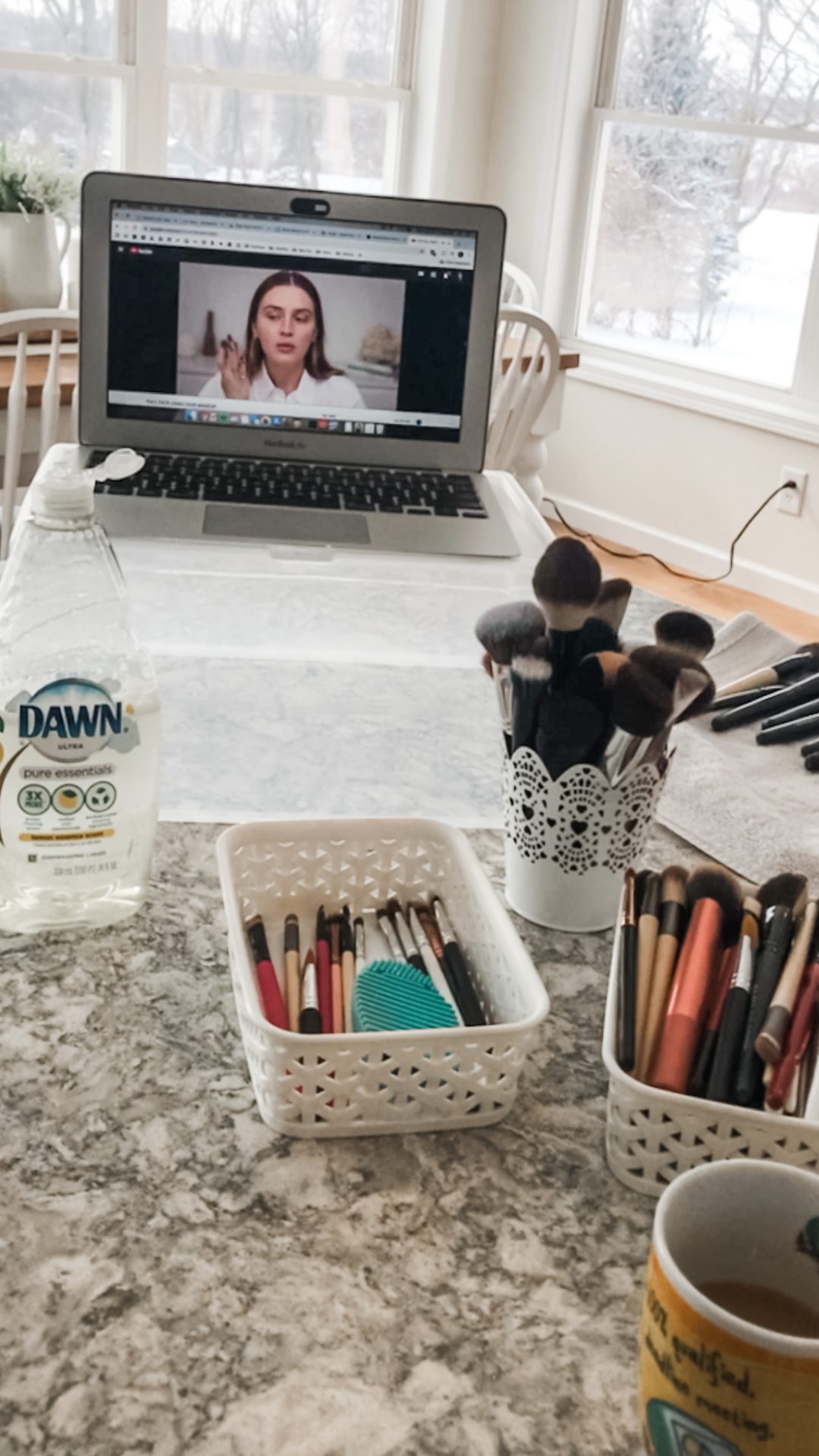 When it’s time to clean your brushes make it a fun self care time! I throw on a mask, put on my favorite YouTube channel and fill up a big cup of coffee and get going! It takes some time so strap in! Lol!