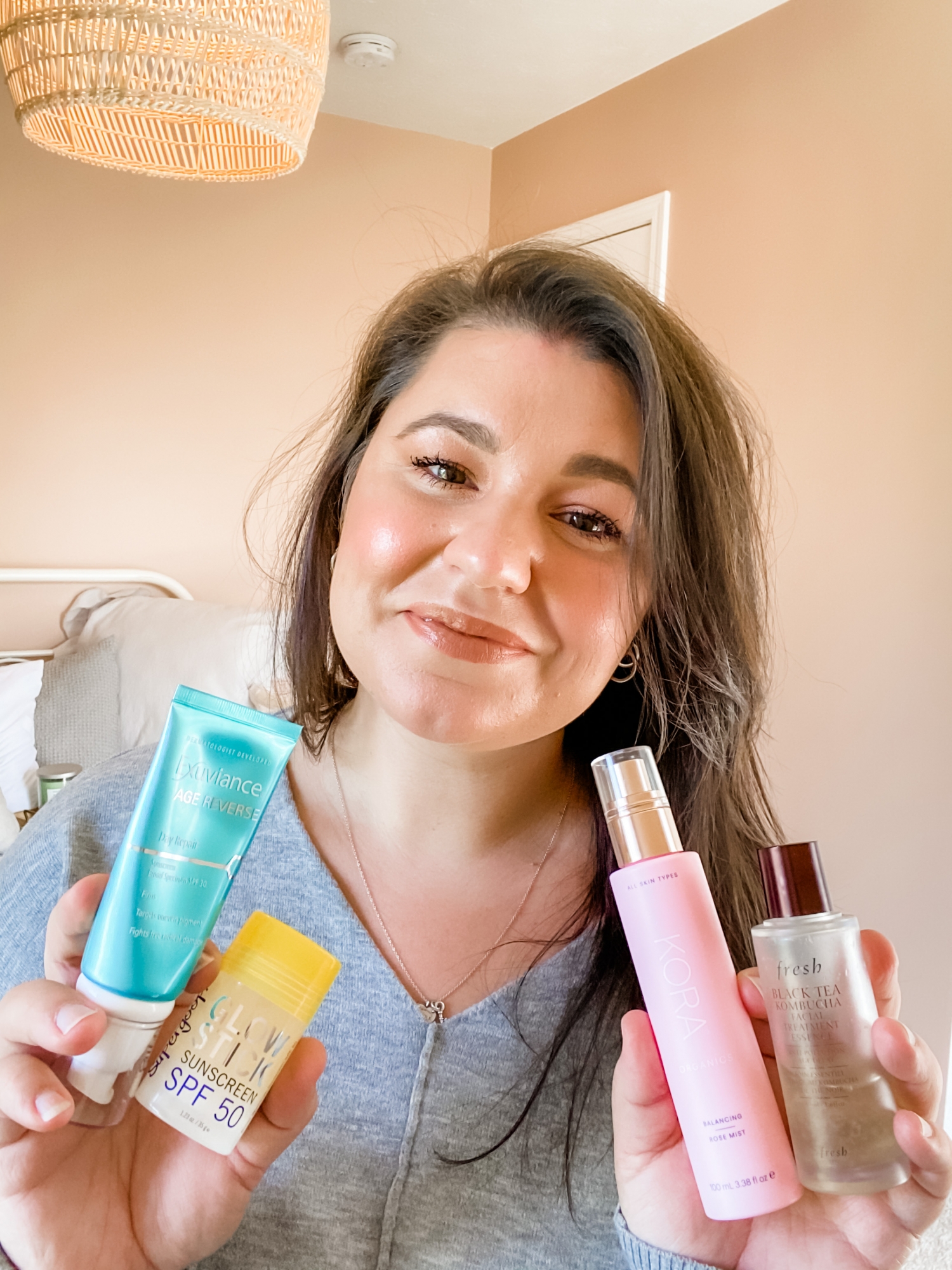 Supergoop Glow Stick SPF 50 is my favorite summer skincare product of all! This is the consistency of an oil but in stick form. I apply this before my makeup on the outer perimeters of my skin and blend in. I apply this where I would normally apply my highlighter and then blend towards the center of my face. Because it is summertime and I normally get a little oily in my T-Zone, I don’t apply too much of this glowy product there. I love this product because it truly gives your skin a gorgeous glow! Your skin will look hydrated and almost wet! I love it. I also apply this after my makeup as a highlighter. This product is totally clear. It doesn’t have any shimmer in it. I love that it gives the skin that glass glow. It also has SPF 50, so go ahead and apply as much of this puppy as you want! It will keep you protected and glassy all day!