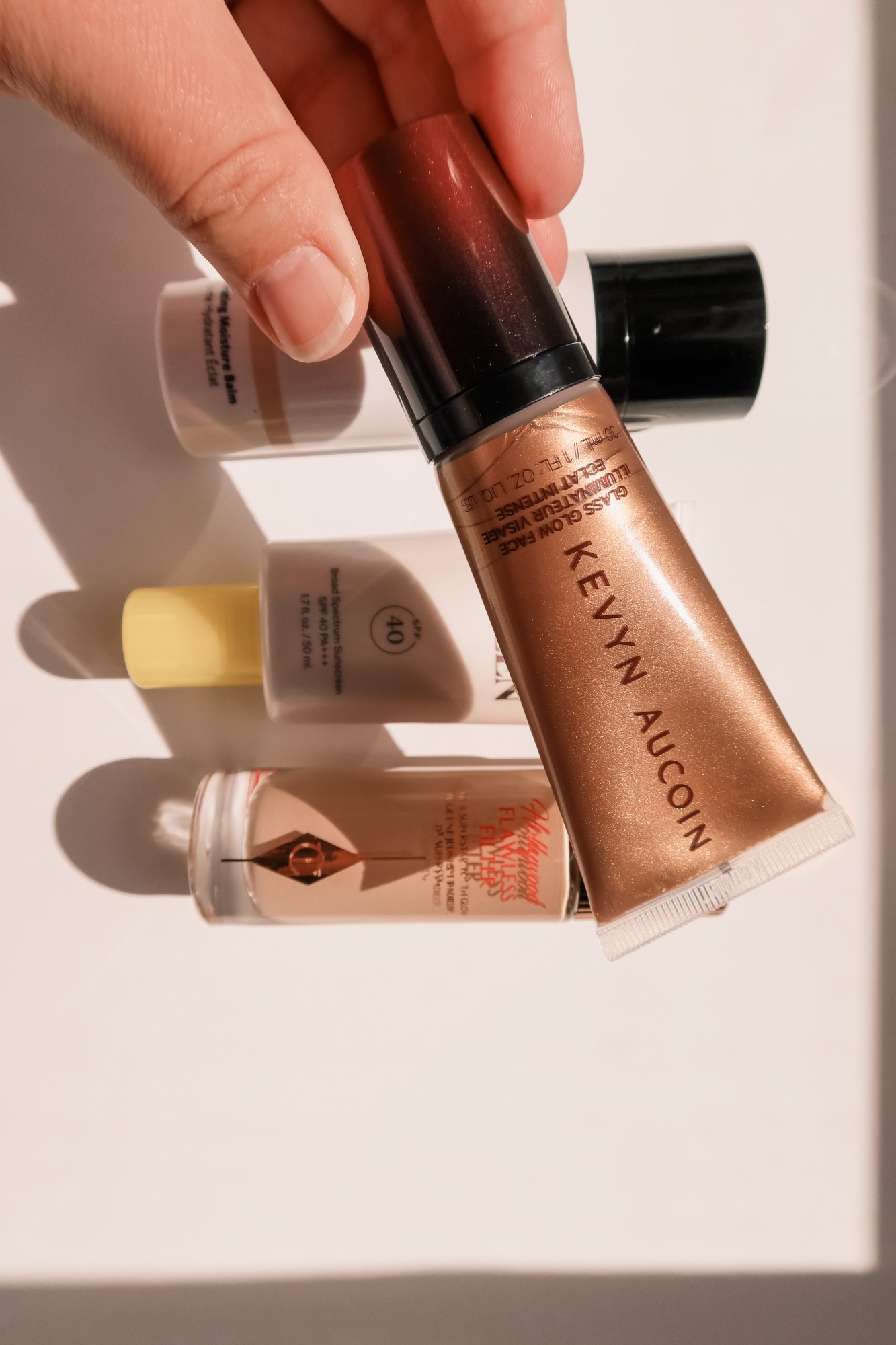 The Kevyn Aucoin Glass Glow Face Illuminator – This product is perfect for normal to dry skin types. It is like a face gloss that leaves you with super hydrated, glowing, wet, glass skin! You could use this before foundation to prep your complexion or after foundation as a wet hydrated highlighter.